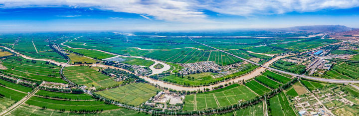 这是在宁夏青铜峡市拍摄的千年古渠唐徕渠流经引黄灌区的沃野良田。宁夏水利厅供图