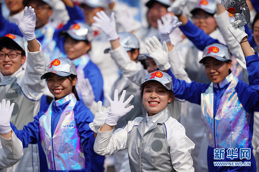10月1日上午,慶祝中華人民共和國(guó)成立70周年大會(huì)在北京天安門廣場(chǎng)隆重舉行。 這是群眾游行中的創(chuàng)新驅(qū)動(dòng)方陣。 新華社記者 周密 攝
