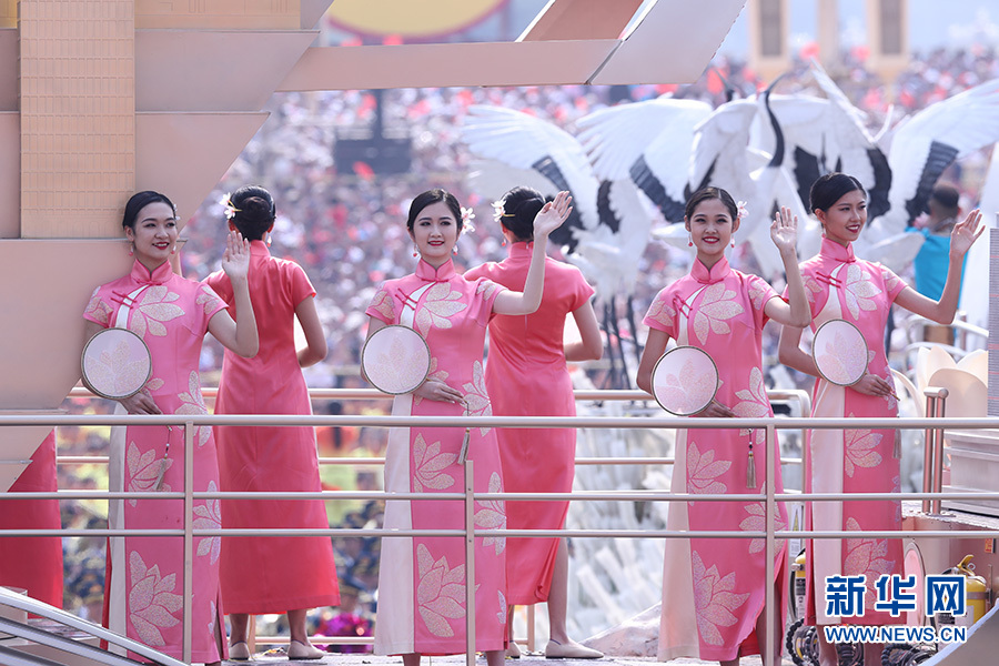 “此次群眾游行方陣?yán)镏袊?guó)文化元素的服裝集中亮相,展示了國(guó)人越來(lái)越自信的風(fēng)貌與氣質(zhì)?!北本┓b學(xué)院服裝藝術(shù)與工程學(xué)院教授鄒游說(shuō)。
