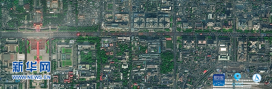 這是“高分1號”拍攝的群眾游行開始前的北京長安街(10月1日攝)。 10月1日上午,慶祝中華人民共和國成立70周年大會在北京天安門廣場隆重舉行。新華社聯(lián)合多家單位調(diào)用多顆國產(chǎn)衛(wèi)星俯瞰閱兵,從“最高機(jī)位”發(fā)回這三張珍貴的長安街全畫幅衛(wèi)星圖。 新華社發(fā)(中國資源衛(wèi)星應(yīng)用中心提供)