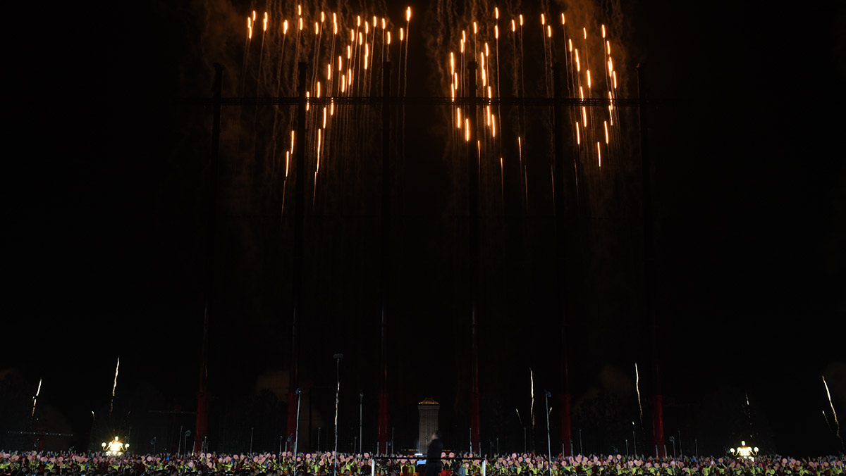 盛裝的天安門廣場,五星紅旗迎風(fēng)招展。從盛大的國慶閱兵到歡樂的群眾游行,轟鳴的禮炮、嘹亮的口號、鏗鏘的步履、喧天的鑼鼓、紛飛的氣球、自信的歡歌……生動的畫面?zhèn)飨蛭逯蓿瑲g樂的笑臉感染世界。
