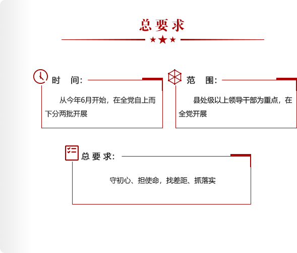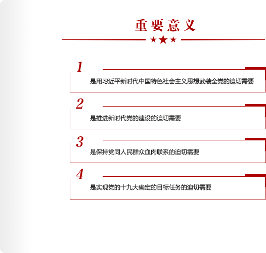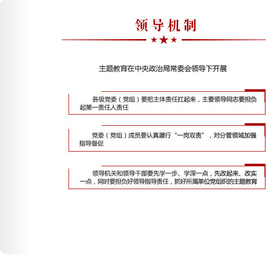 • 空談?wù)`國,實(shí)干興邦。抓落實(shí)、求實(shí)效,是我們黨治國理政一以貫之的理念與行動(dòng),也是衡量主題教育成效的重要標(biāo)尺。我們一定要以“四個(gè)到位”抓實(shí)主題教育,以釘釘子精神狠抓落實(shí),確保主題教育取得扎扎實(shí)實(shí)的成效。 [詳細(xì)]