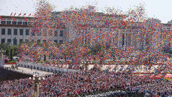 - 70架直升機組成的強大編隊最后通過天安門廣場上空