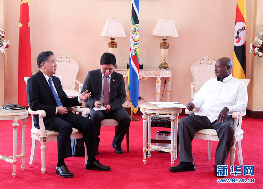 穆塞韋尼請汪洋轉達對習主席的親切問候和良好祝愿。他表示,烏中傳統(tǒng)友誼深厚。中國老一輩領導人在烏反殖民和民族獨立進程中始終同烏人民堅定地站在一起。習主席提出中非“十大合作計劃”,為烏實現(xiàn)國家轉型和中長期發(fā)展提供了新機遇。我對烏中合作十分滿意,期待同習主席在北京峰會上共同規(guī)劃非中關系美好未來。會見后,汪洋與穆塞韋尼共同為中交建公司承建的烏干達首條國家高速公路通車剪彩。
