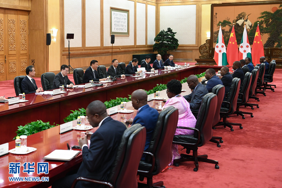 習近平指出,中布關系處于歷史上最好時期,中方積極支持布方自主探索適合本國國情的發(fā)展道路,愿繼續(xù)在聯(lián)合國等多邊場合維護布方合法權(quán)益。中方歡迎布方積極參與“一帶一路”建設,愿同布方攜手努力,深入推進基礎設施建設、能源、農(nóng)業(yè)等領域互利合作,幫助布隆迪提高糧食生產(chǎn)能力,繼續(xù)向布隆迪派遣醫(yī)療隊。