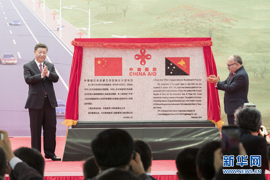 11月16日,國家主席習近平在莫爾茲比港和巴布亞新幾內(nèi)亞總理奧尼爾共同出席中國援建的獨立大道移交啟用儀式。新華社記者 鞠鵬 攝