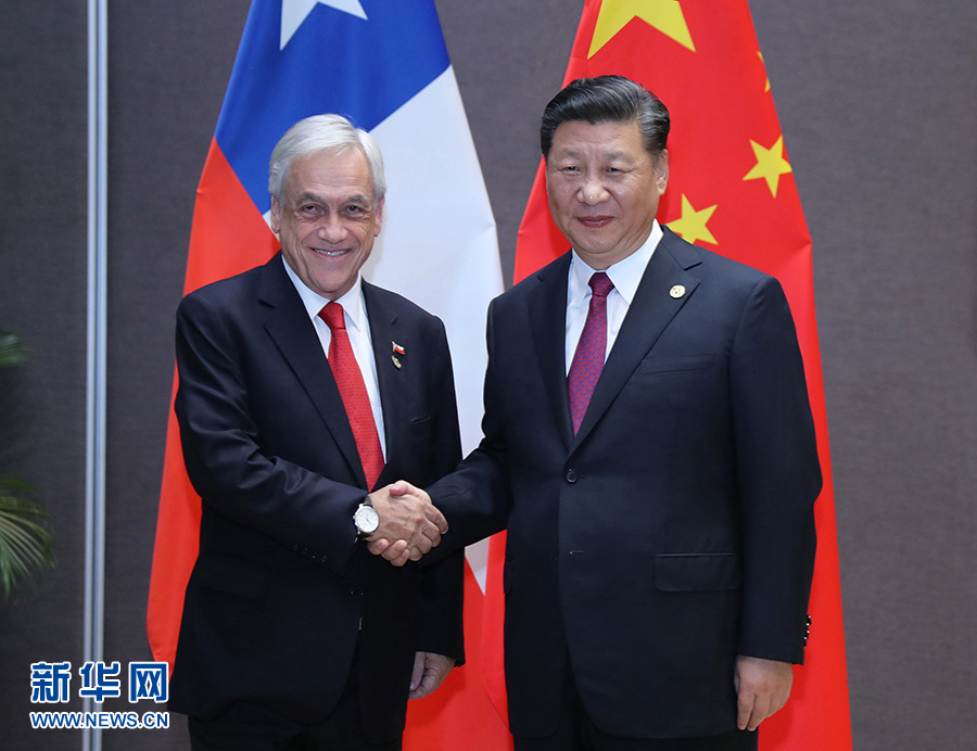 習近平指出,智利是第一個同新中國建交的南美洲國家,中智關系長期走在中拉關系前列。新形勢下,我們要繼續(xù)推動中智合作再上新臺階。我祝賀你第二次擔任智利總統(tǒng),相信在我們共同引領下,中智全面戰(zhàn)略伙伴關系一定會開創(chuàng)新局面,實現新發(fā)展,為提升中拉整體合作作出更大貢獻。
