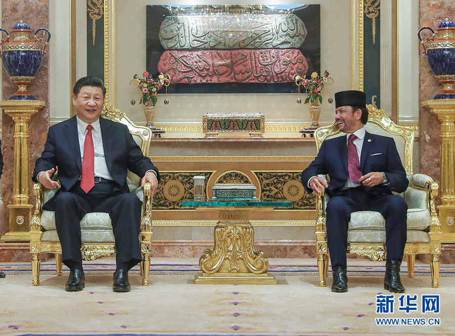 新華社斯里巴加灣市11月19日電(記者霍小光 李建敏 魏建華)國家主席習近平19日在斯里巴加灣同文萊蘇丹哈桑納爾舉行會談。兩國元首高度評價中文關(guān)系積極發(fā)展勢頭,一致決定建立中文戰(zhàn)略合作伙伴關(guān)系,做政治互信、經(jīng)濟互利、人文互通、多邊互助的好伙伴。