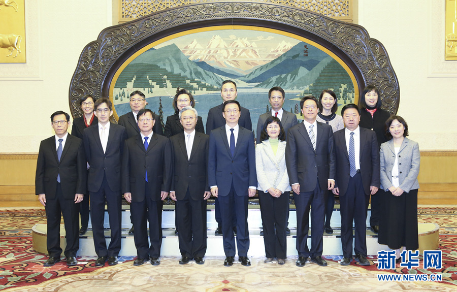11月21日,中共中央政治局常委、國(guó)務(wù)院副總理韓正在北京人民大會(huì)堂會(huì)見(jiàn)香港特別行政區(qū)公務(wù)員事務(wù)局局長(zhǎng)羅智光率領(lǐng)的特區(qū)政府常任秘書長(zhǎng)和部門首長(zhǎng)內(nèi)地研修訪問(wèn)團(tuán)全體成員。 新華社記者姚大偉攝