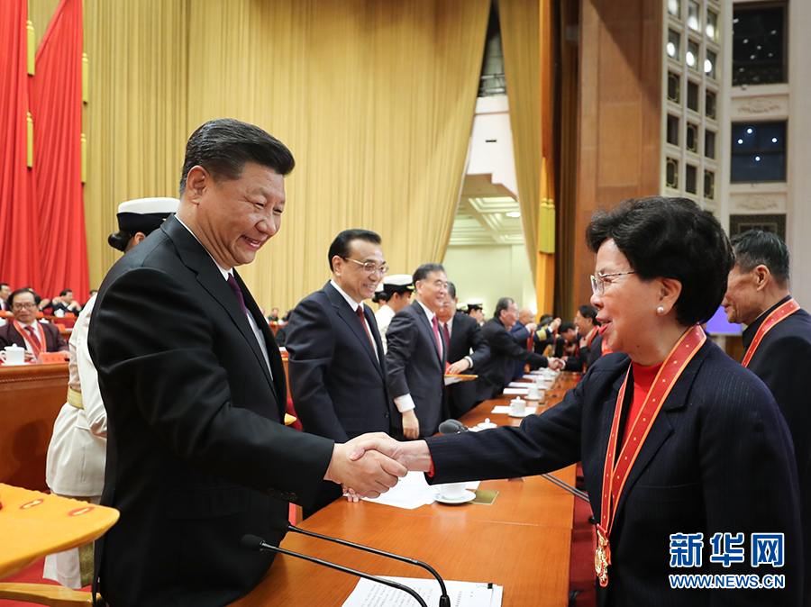 12月18日,慶祝改革開(kāi)放40周年大會(huì)在北京人民大會(huì)堂隆重舉行。中共中央總書記、國(guó)家主席、中央軍委主席習(xí)近平在大會(huì)上發(fā)表重要講話。這是習(xí)近平等為獲得改革先鋒稱號(hào)人員代表頒獎(jiǎng)。 新華社記者 鞠鵬 攝