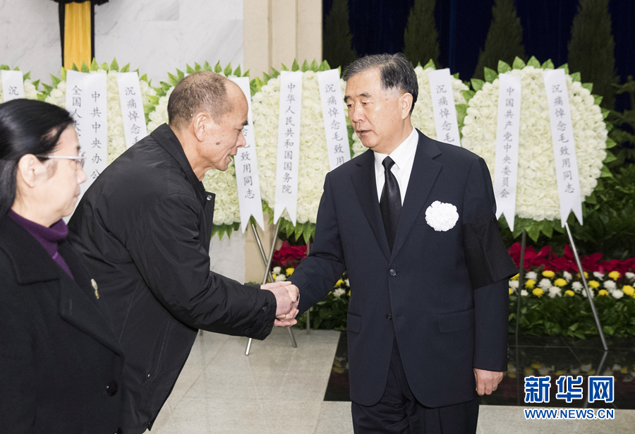 上午9時許,汪洋等在哀樂聲中緩步來到毛致用同志的遺體前肅立默哀,向毛致用同志的遺體三鞠躬,并與毛致用同志親屬一一握手,轉(zhuǎn)達習(xí)近平總書記等中央領(lǐng)導(dǎo)同志對毛致用同志親屬的深切慰問。