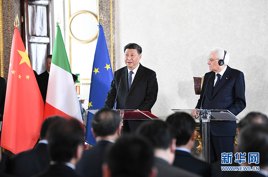 習(xí)近平強調(diào),明年是中意建交50周年,兩國將互辦文化旅游年,各領(lǐng)域合作將迎來新的機遇。中方愿同意大利各界一道努力,推動兩國關(guān)系在互利共贏大路上行穩(wěn)致遠,為促進中歐互聯(lián)互通乃至世界發(fā)展繁榮作出新的貢獻。希望中意企業(yè)界、文化界人士在各自領(lǐng)域為兩國合作貢獻更多智慧和力量。