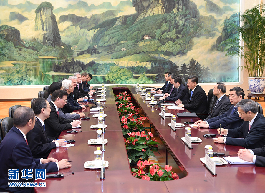 4月24日,國家主席習(xí)近平在北京人民大會(huì)堂會(huì)見國際貨幣基金組織總裁拉加德。 新華社記者 饒愛民 攝