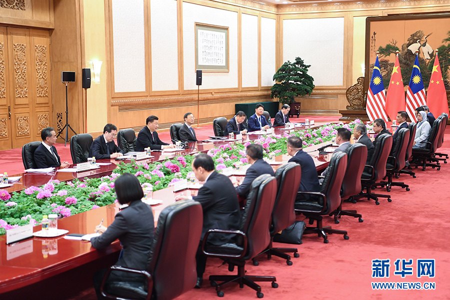 習近平指出,中國和馬來西亞建交45年,一半時間在馬哈蒂爾先生總理任內,你對中馬關系發(fā)展作出了重要貢獻。當前,兩國關系站在了新的歷史起點上。我們要以共建“一帶一路”為機遇,為中馬關系開創(chuàng)美好未來。雙方要堅持中馬友好,相互尊重和信任;照顧彼此重大關切,相互理解和支持。共建“一帶一路”可以推動中國全方位開放,這為世界各國、特別是周邊國家?guī)砀髾C遇。中馬共建“一帶一路”基礎扎實,前景可期,雙方要加強規(guī)劃,做大合作平臺,推進高質量合作,要把“兩國雙園”做大做強,使其成為“陸海新通道”重要節(jié)點,促進兩國和地區(qū)聯(lián)通和發(fā)展。總理先生崇尚“亞洲價值觀”,倡導發(fā)展中國家團結合作,在當前形勢下有重要現(xiàn)實意義。雙方要加強多邊協(xié)作,推動中國-東盟合作提質升級。中方支持馬方明年當好亞太經合組織會議東道主,推動區(qū)域經濟一體化和經濟全球化,推動構建開放型世界經濟。