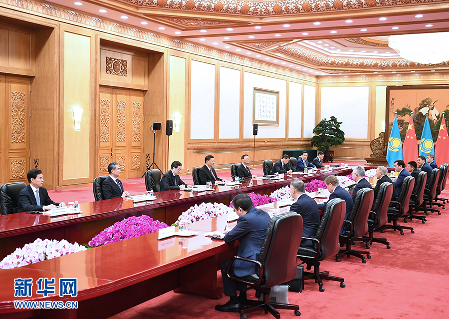 4月28日,國(guó)家主席習(xí)近平在北京人民大會(huì)堂會(huì)見哈薩克斯坦首任總統(tǒng)納扎爾巴耶夫。 新華社記者 謝環(huán)馳 攝