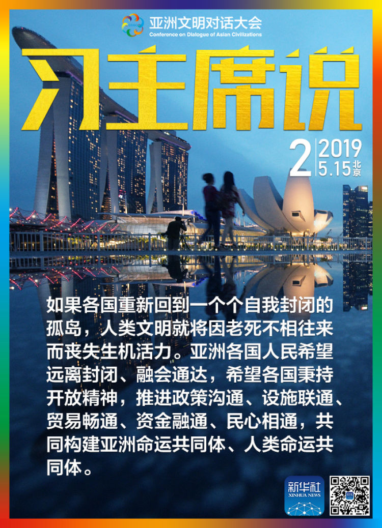 如果各國重新回到一個個自我封閉的孤島,人類文明就將因老死不相往來而喪失生機活力。亞洲各國人民希望遠(yuǎn)離封閉、融會通達,希望各國秉持開放精神,推進政策溝通、設(shè)施聯(lián)通、貿(mào)易暢通、資金融通、民心相通,共同構(gòu)建亞洲命運共同體、人類命運共同體。
