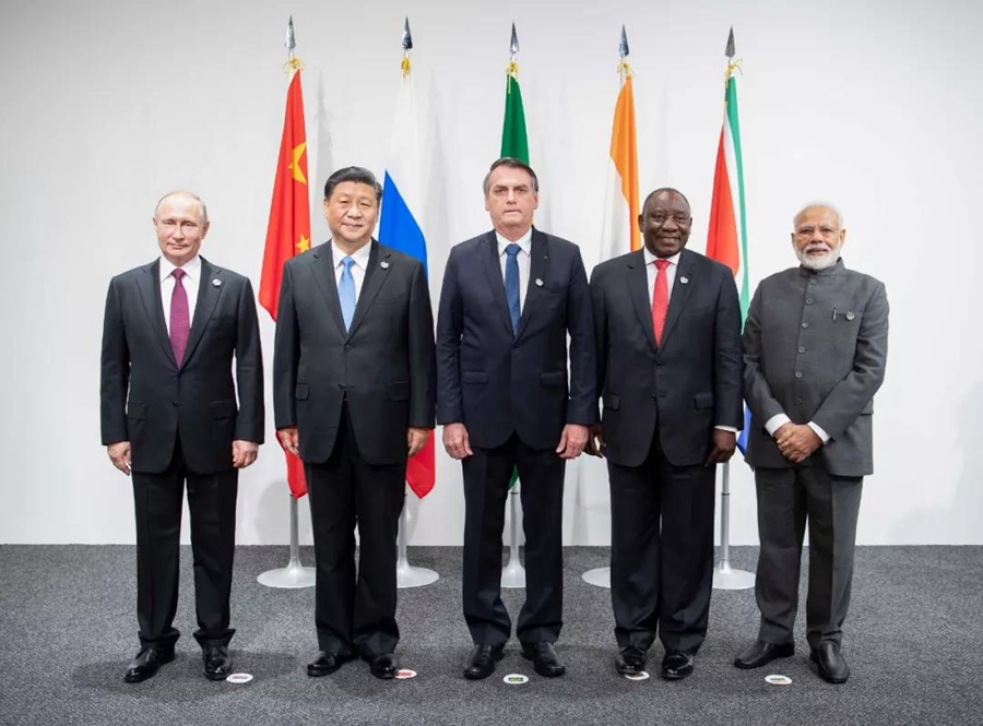 ↑金磚國家領(lǐng)導(dǎo)人會晤6月28日在大阪舉行。與會領(lǐng)導(dǎo)人圍繞金磚伙伴關(guān)系、全球治理、科技創(chuàng)新合作等深入交換意見,凝聚共識。新華社記者李濤攝
