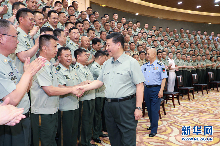 7月15日至16日,中共中央總書記、國家主席、中央軍委主席習(xí)近平在內(nèi)蒙古考察并指導(dǎo)開展“不忘初心、牢記使命”主題教育。這是16日上午,習(xí)近平在呼和浩特親切接見駐內(nèi)蒙古部隊副師職以上領(lǐng)導(dǎo)干部和團(tuán)級單位主官,代表黨中央和中央軍委向駐內(nèi)蒙古部隊全體官兵致以誠摯問候。 新華社記者 李剛 攝