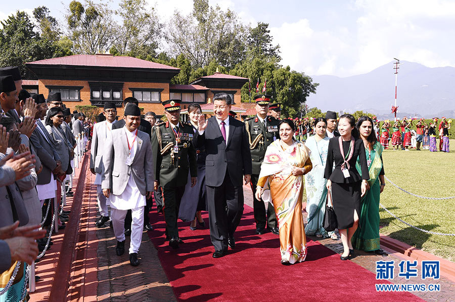 當?shù)貢r間10月13日中午,國家主席習近平離開加德滿都啟程回國。尼泊爾總統(tǒng)班達里在機場為習近平舉行隆重歡送儀式。尼泊爾副總統(tǒng)普恩、總理奧利、聯(lián)邦議會聯(lián)邦院主席蒂米爾西納、所有內(nèi)閣成員、軍方高級將領(lǐng)參加。 新華社記者 高潔 攝