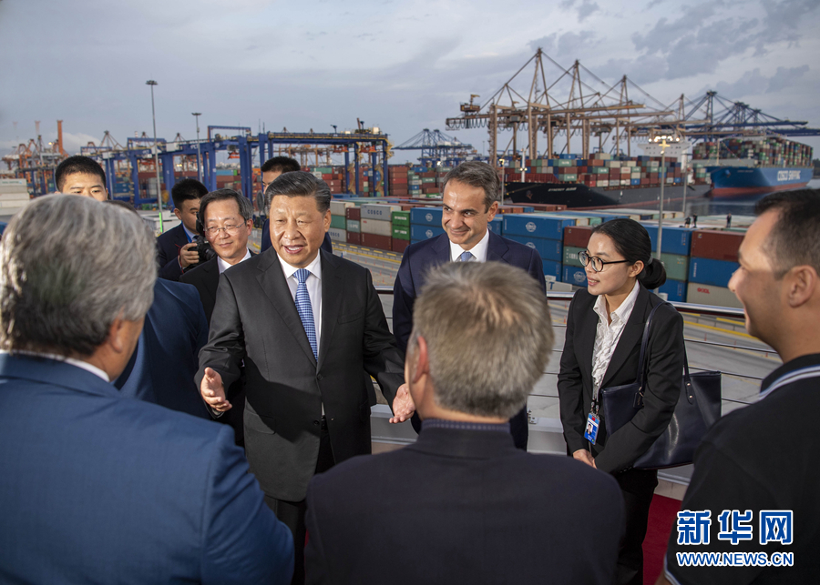 當(dāng)?shù)貢r(shí)間11月11日,國家主席習(xí)近平和夫人彭麗媛在希臘總理米佐塔基斯夫婦陪同下,共同參觀中遠(yuǎn)海運(yùn)比雷埃夫斯港項(xiàng)目。這是習(xí)近平與當(dāng)?shù)貑T工代表親切交談,詢問他們的工作和生活情況。 新華社記者 李學(xué)仁 攝