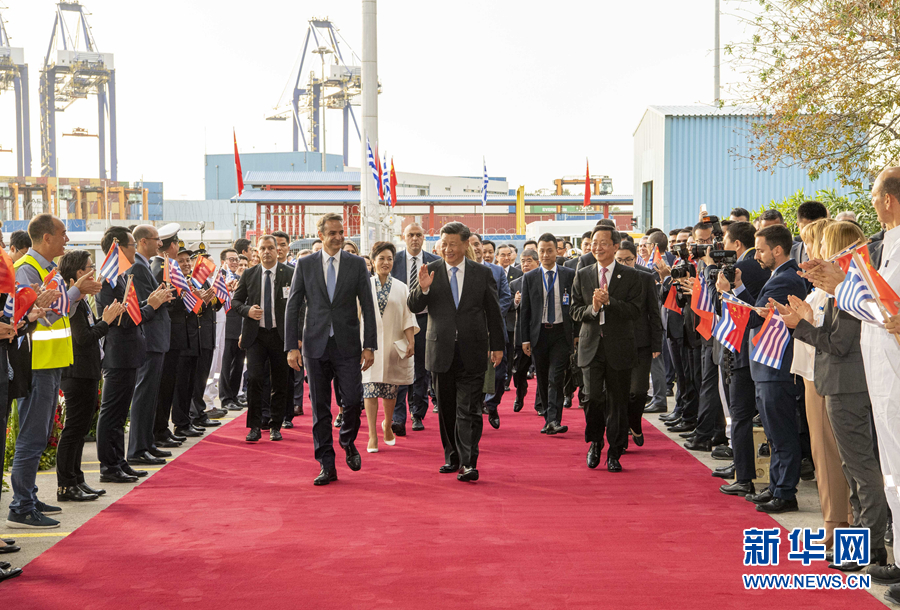當(dāng)?shù)貢r間11月11日,國家主席習(xí)近平和夫人彭麗媛在希臘總理米佐塔基斯夫婦陪同下,共同參觀中遠(yuǎn)海運(yùn)比雷埃夫斯港項(xiàng)目。 新華社記者 李學(xué)仁 攝