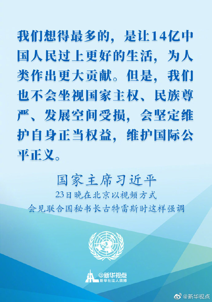國家主席習(xí)近平23日晚在北京以視頻方式會見聯(lián)合國秘書長古特雷斯時(shí)講話的金句