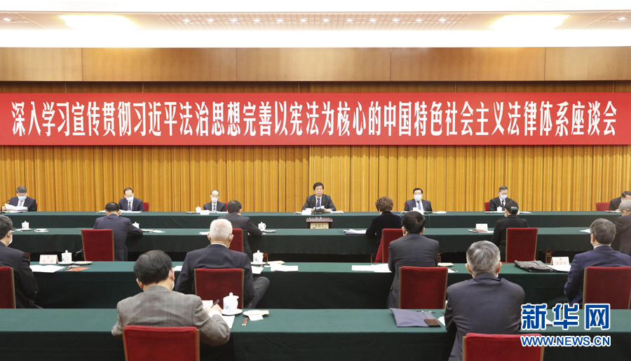 今年12月4日是第七個(gè)國(guó)家憲法日,全國(guó)人大常委會(huì)辦公廳會(huì)同中央宣傳部、司法部在京召開“深入學(xué)習(xí)宣傳貫徹習(xí)近平法治思想,完善以憲法為核心的中國(guó)特色社會(huì)主義法律體系”座談會(huì)。中共中央政治局常委、全國(guó)人大常委會(huì)委員長(zhǎng)栗戰(zhàn)書出席座談會(huì)并講話。新華社記者 劉衛(wèi)兵 攝