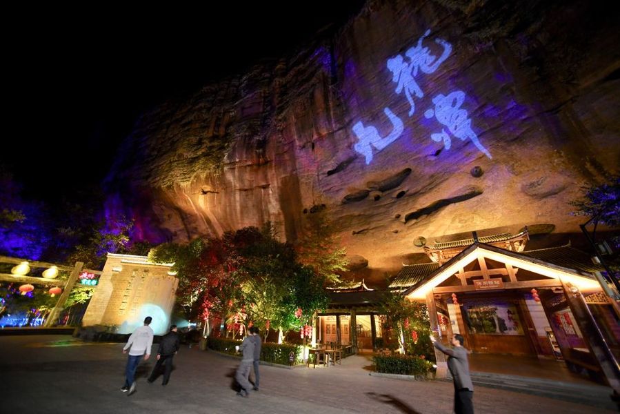 游客前往福建省泰寧縣九龍?zhí)毒皡^(qū)體驗夜游九龍?zhí)堵糜雾椖浚?1月19日攝)。新華社記者 姜克紅 攝