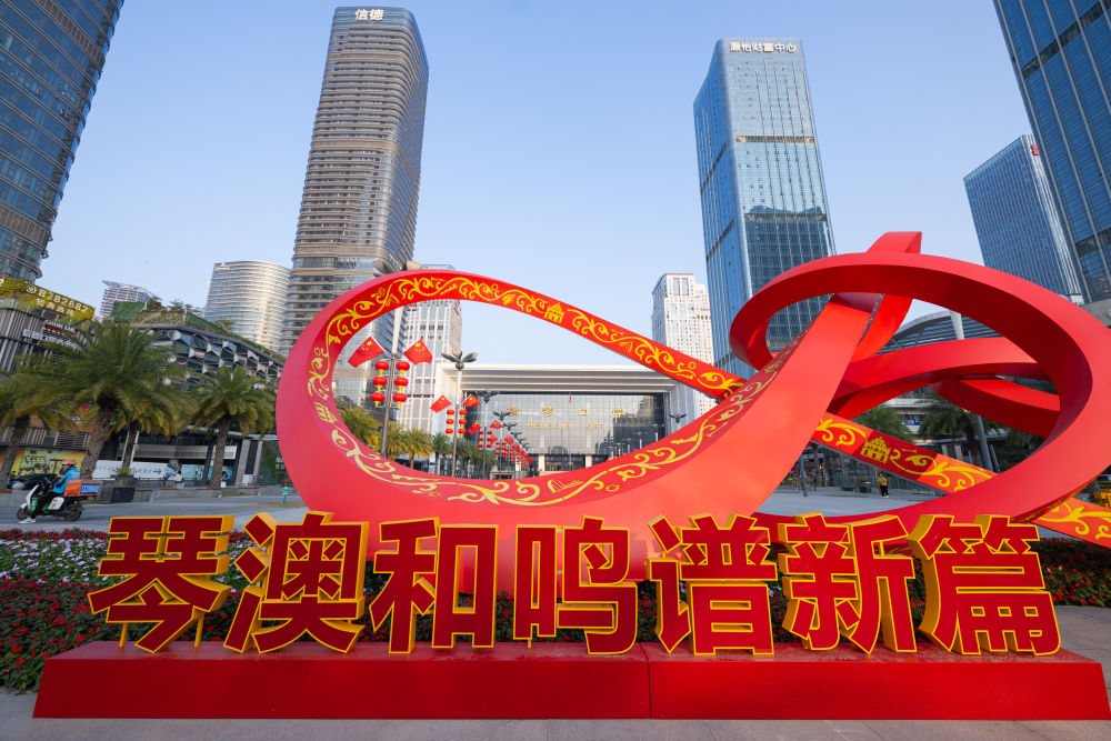 这是横琴口岸前的装饰(2026年1月13日摄)。新华社发(张金加 摄)