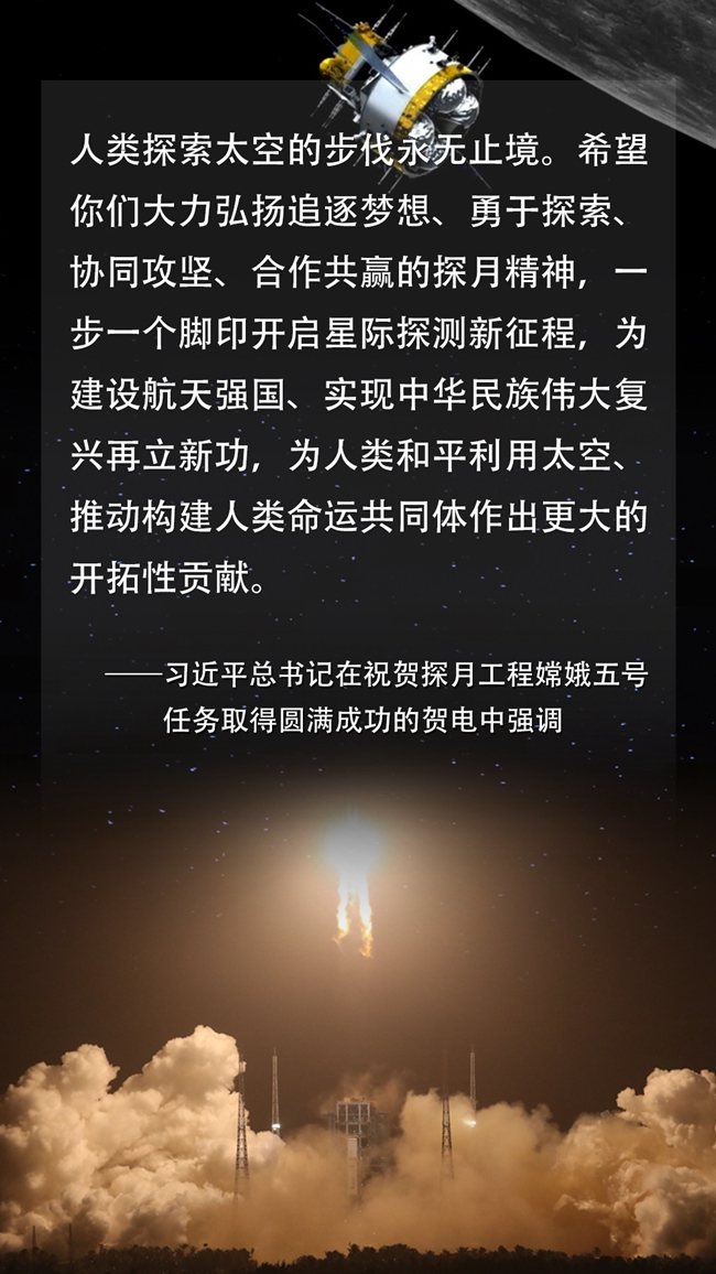 習(xí)近平代表黨中央、國(guó)務(wù)院和中央軍委祝賀探月工程嫦娥五號(hào)任務(wù)取得圓滿成功的賀電