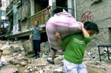 武警戰(zhàn)士為舟曲村莊群眾運送物資