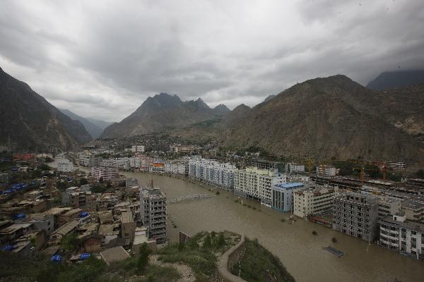 舟曲縣城積水依然嚴重 救援人員加緊疏通河道