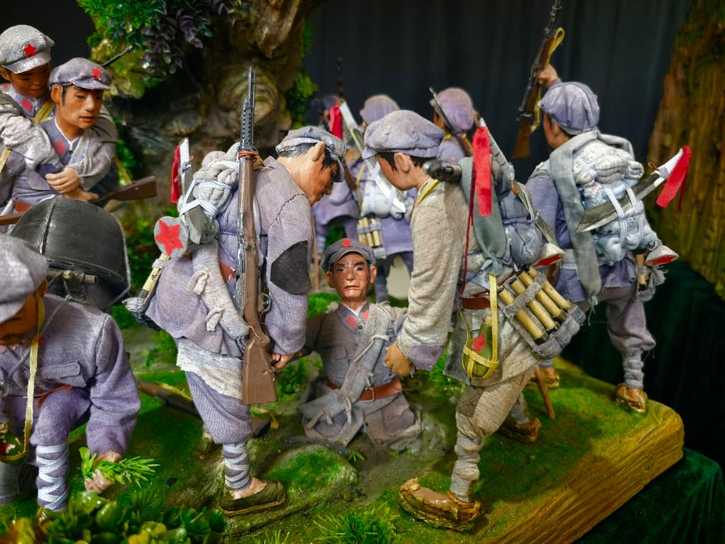 新华社银川4月5日电(记者马思嘉)爬雪山、过草地、巧渡金沙江、飞夺泸定桥、血战湘江……在张国勤老人的工作室,12组雕塑、320个神情各异的人物,还原了红军长征途中惊心动魄的瞬间。红军战士们清瘦坚毅的面容、举旗进发的豪迈都令人动容。