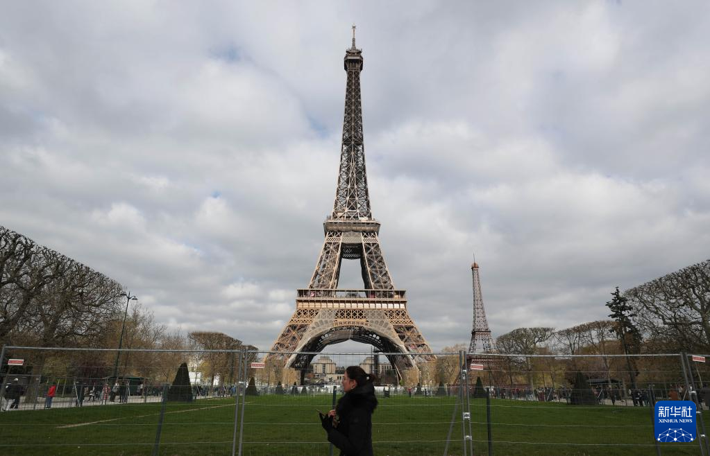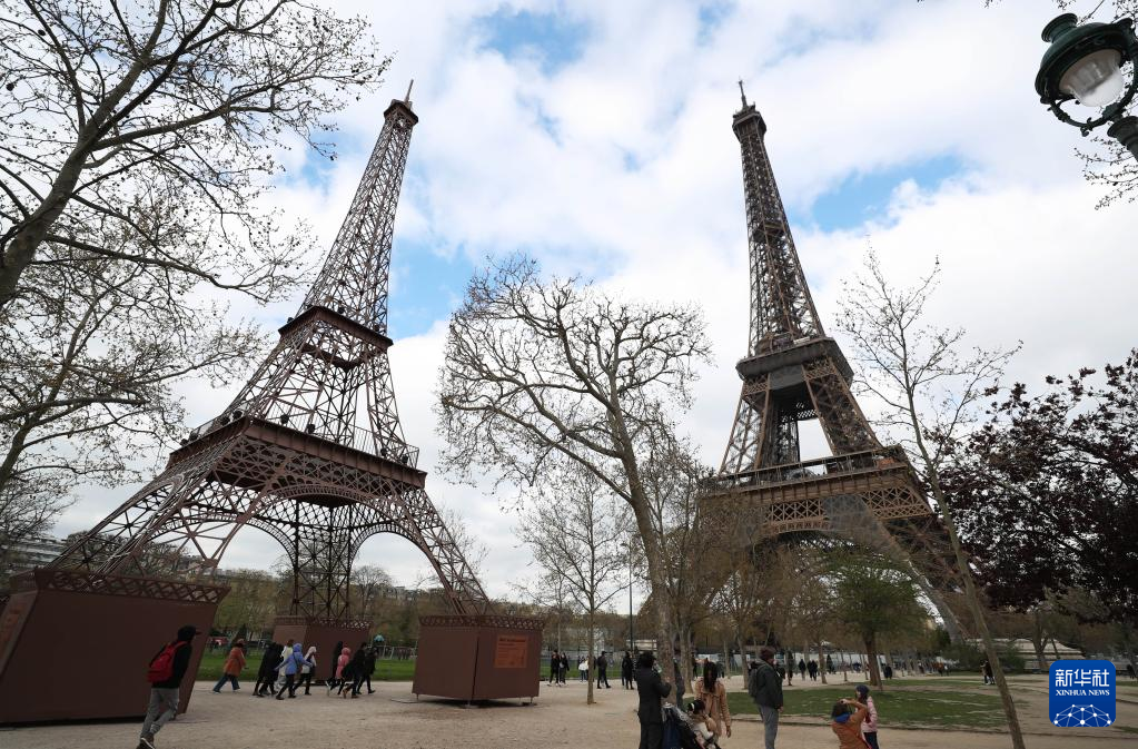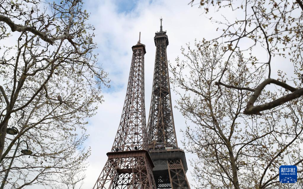 这是4月3日在法国巴黎拍摄的埃菲尔铁塔(左)和“小埃菲尔铁塔”。