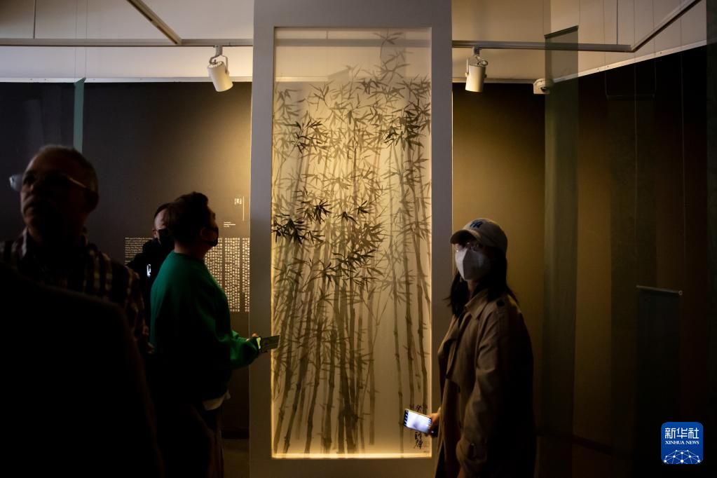 4月7日,人们在韩国光州参观光州双年展中国馆。