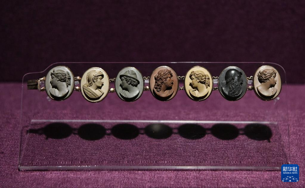 这是4月27日在广东省博物馆的“绽放:维多利亚时代的艺术”预展上拍摄的珠宝手镯。