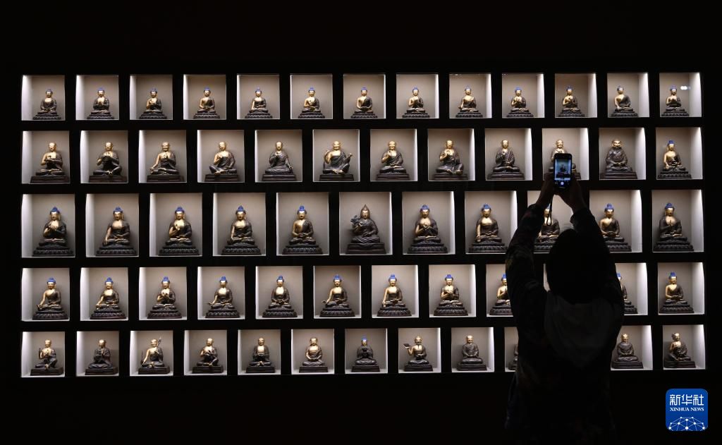 这是4月28日在北京故宫博物院拍摄的“祥开万象——故宫与西藏文物联展”展览现场。