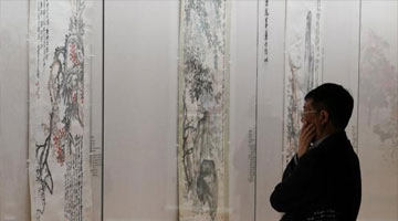 5月9日,参观者在展览现场观赏参展作品《ON》。
