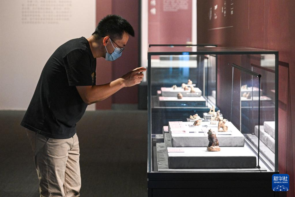 5月18日,观众在中国(海南)南海博物馆观看“诗画彩瓷——唐代海上丝绸之路上的长沙窑瓷器展”。