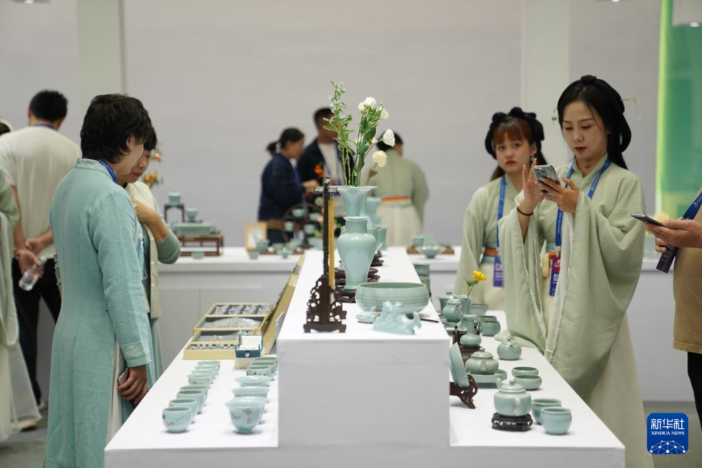 10月18日,一名外国参观者在瓷博会高校展区拍摄陶瓷艺术品。