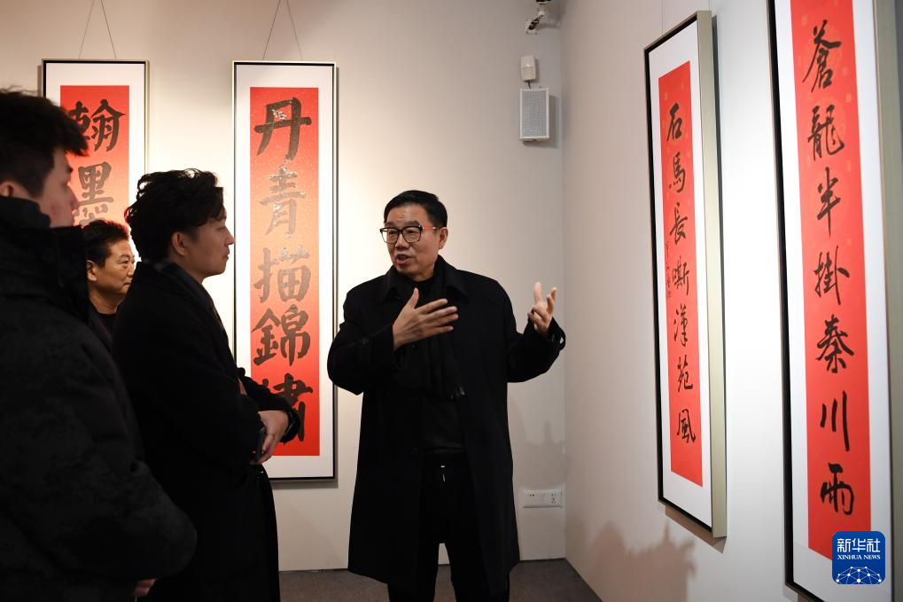 当日,“龙行六合、星语楹春”跨界书家春联展在北京举行,展出书法家、演员、歌手等各界艺术家创作的春联、福字等作品。