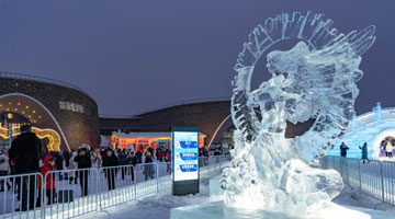 这是1月3日在芬兰赫尔辛基拍摄的一座灯光装置。