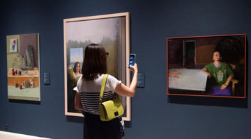 4月19日,观众在美国旧金山亚洲艺术博物馆举办的“凤凰故国——青铜时代曾楚艺术展”上参观。