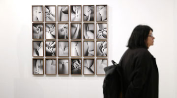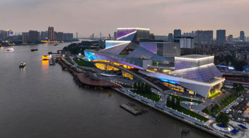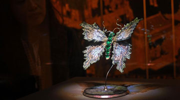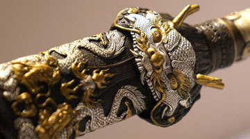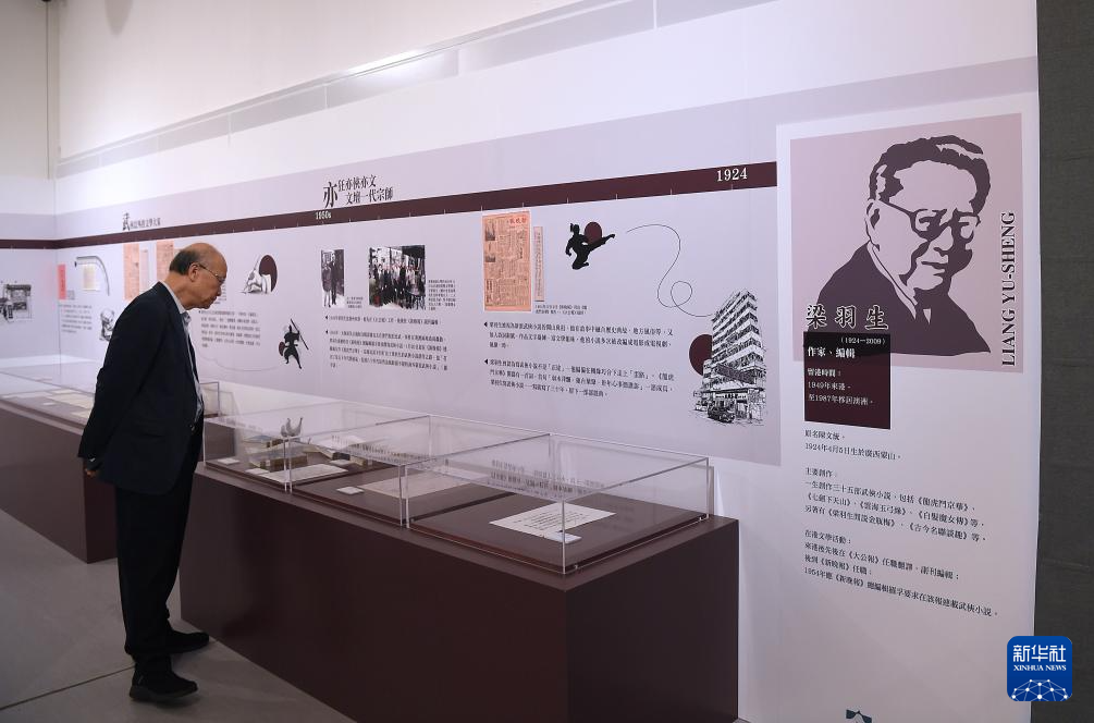 5月11日,观众在南来作家手迹遗物展上拍摄武侠作家金庸和梁羽生的雕塑。