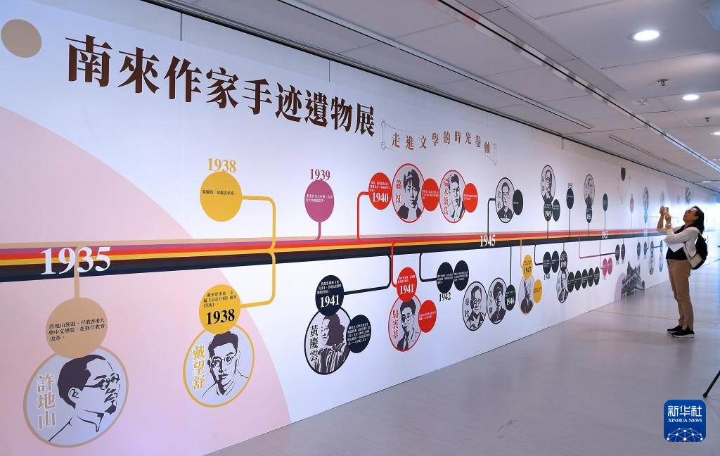 当日,由香港文学馆、香港作家联会及中国现代文学馆主办的“南来作家手迹遗物展——走进文学时光的卷轴”在香港中央图书馆开幕。展览展出许地山、萧红、金庸等24位由内地南迁至香港的作家的手迹和物品逾300件。