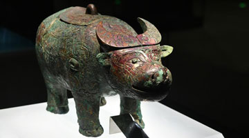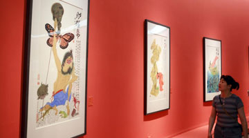 7月2日在展览现场拍摄的上海博物馆收藏的陈世英作品“王者归来”。