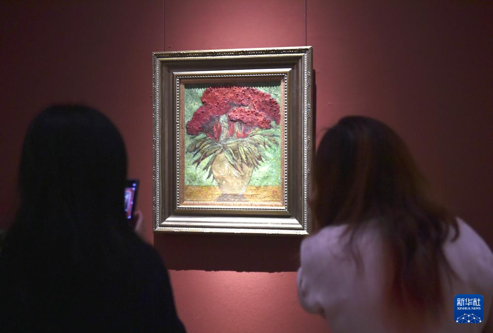 8月31日,参观者在中国美术馆参观拍摄展出作品“鸡冠花”。
