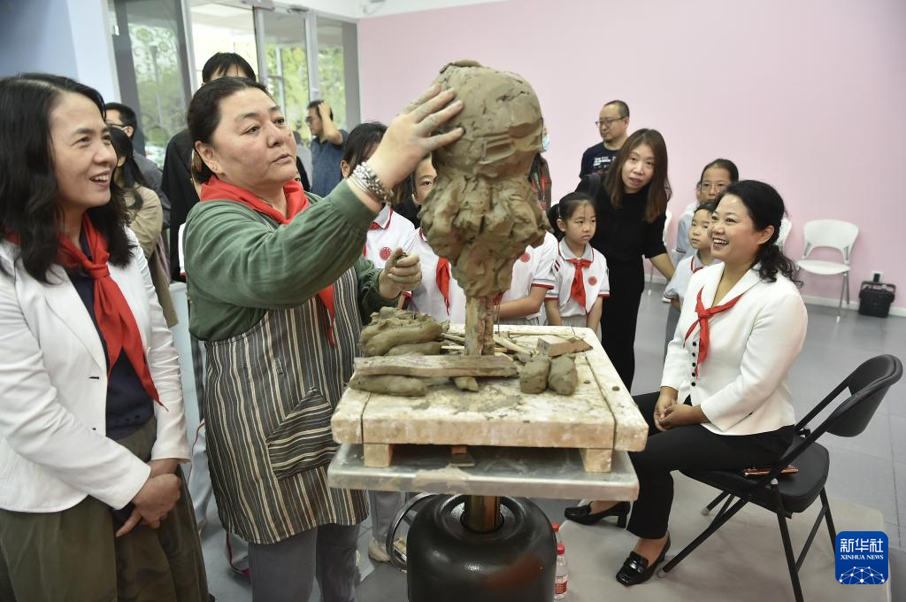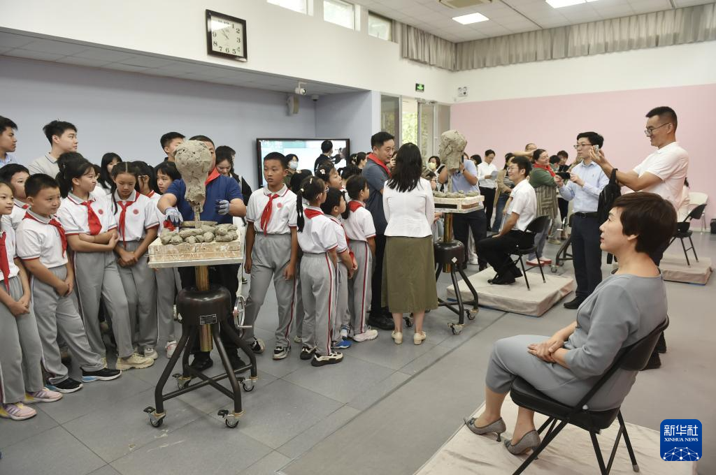9月10日,雕塑家周思旻为山西省太原市万柏林区兴华学前教育集团总园长、教师安慧霞塑像。