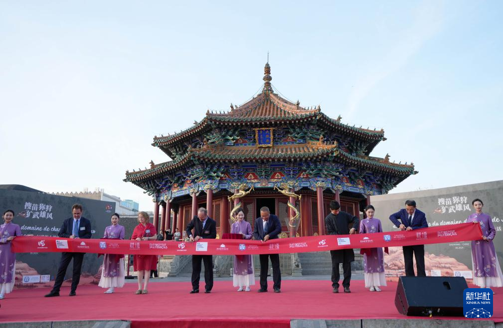 当日,沈阳故宫博物院和法兰西学院联合主办的“搜苗狝狩 犷武雄风——清《盛京围场全图》与满族人的渔猎生活”展览在沈阳故宫博物院开展。