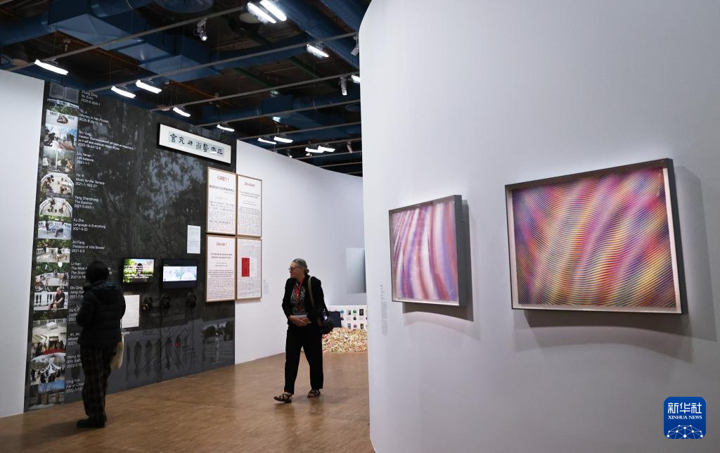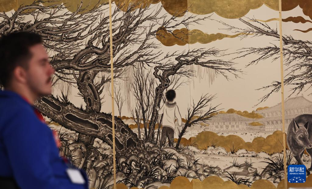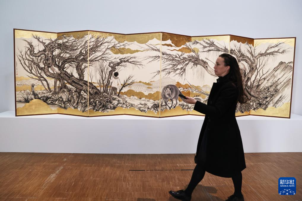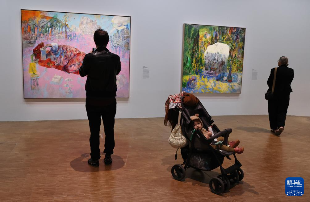 10月8日,人们在法国巴黎蓬皮杜中心参观中国当代艺术家群展《目:中国境象》。